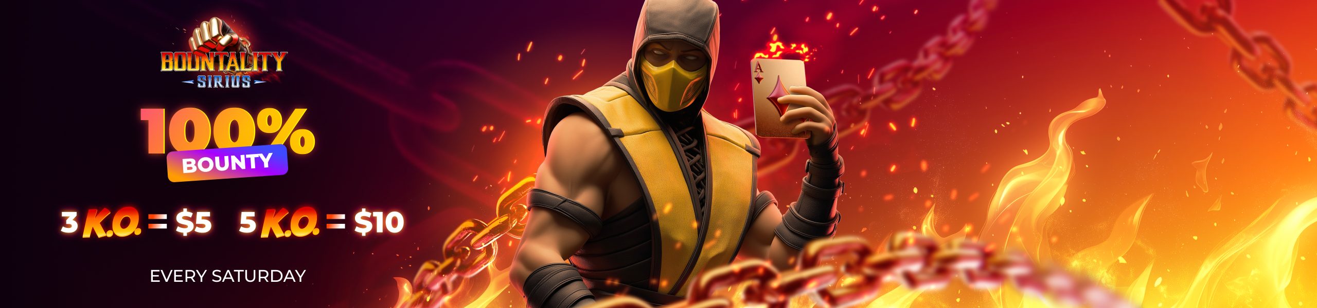 In the weekly 100% Bountality Sirius tournament, you can now earn up to $10 extra for knocking out opponents! From December 6 to January 13, knock out three opponents to get $5, and five or more to receive $10!
