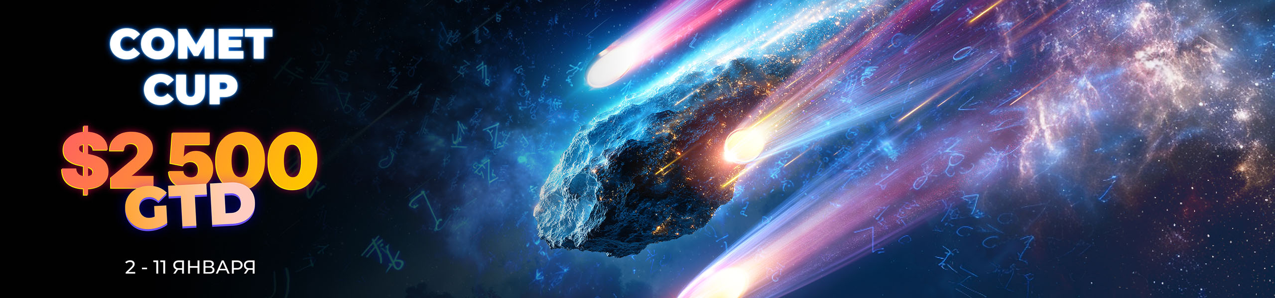 Со 2 по 11 января — Comet Cup возвращается! Знакомый формат, приятная гарантия и гарантированные призы в финале! Comet Cup — это серия стартовых дней (День 1) и финальный общий день (День 2), где разыгрывается призовой фонд от $2 500.